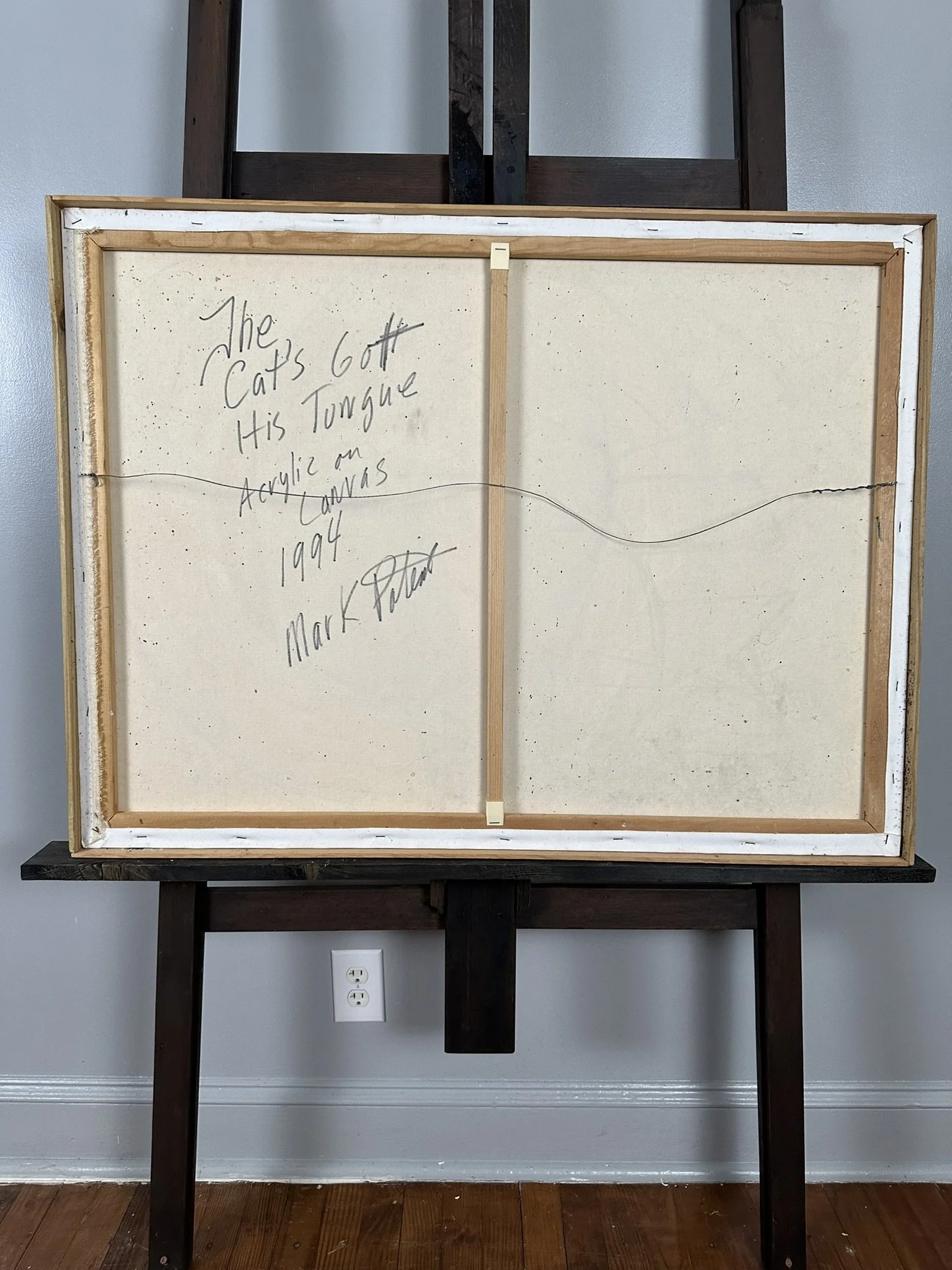 The painting Cat Got Your Tongue was completed in 1994 is a part of the series of paintings, and works on paper that has as its subject, a man and a cat. Another painting that was a part of this series is the painting The Tramp and The Stray #1.