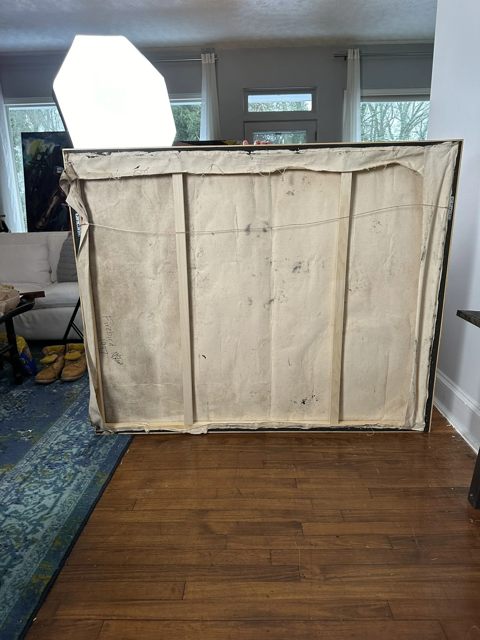 The painting Firehawk, completed in 1997 has the same compositional format as the Snake Charmer. It also references a famous work of art, the composer, Igor Stravinsky’s ballet Firebird. In this painting on the bottom right side, there are three Xerox copies of a man standing in front of an old airplane. Represented in that photograph is my grandfather who built propellers and the airplane in the picture (1929).